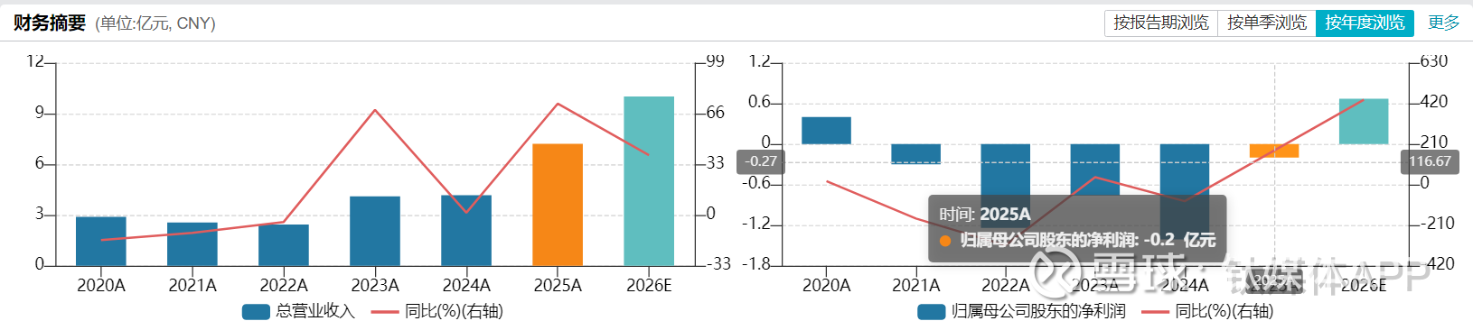业绩数据进一步凸显公司的经营压力。2025年公司归母净利润亏损1973.37万元,虽较2024年1.41亿元的巨亏收窄86%,但已是2020年上市以来的第五年亏损。