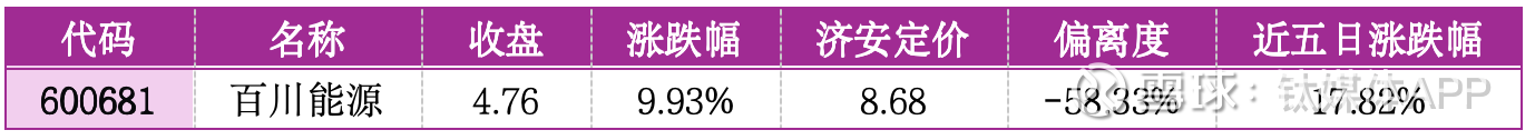 机会提示:该股偏离济安定价 - 58.33%,处于深度低估状态,天然气板块景气度回升叠加估值优势,短期修复动力强劲,可跟踪量能延续性把握波段机会。