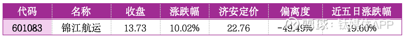 机会提示:该股偏离济安定价 - 49.49%,估值处于低位,航运板块复苏预期下,估值修复逻辑顺畅,短期具备布局价值,关注板块整体走势。