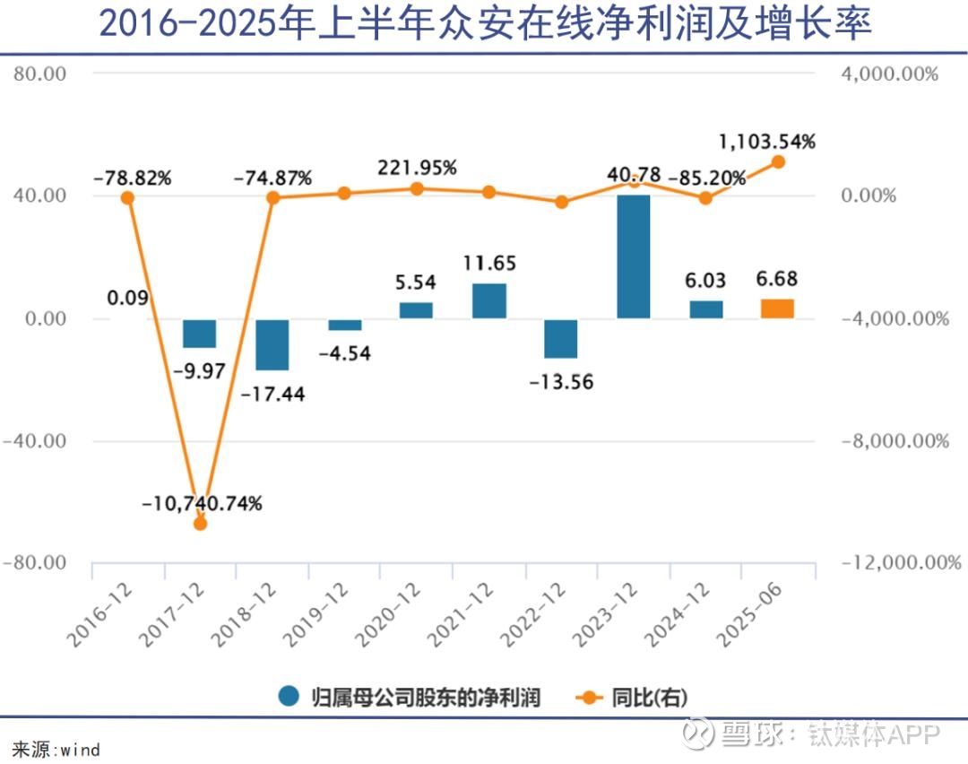 毕竟上市以来,众安在线的营收虽然保持增长,但净利润的表现却起伏不定,2020年第一次实现扭亏为盈,2022年又亏损了13.56亿元,2023年净利润猛增至40.78亿元,随后的2024年又回落至6.03亿元。
