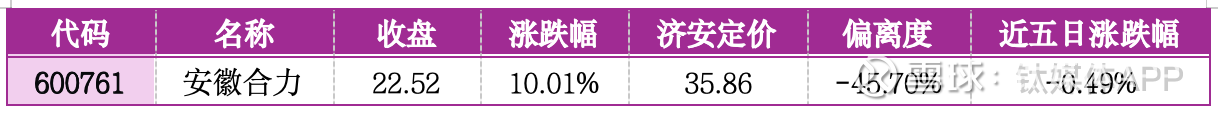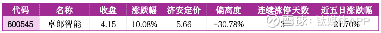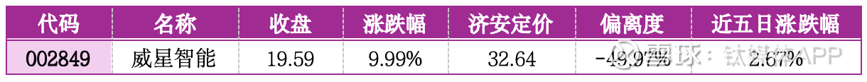 风险提示:该股偏离济安定价-30.78%,3连板后短期涨幅过大,资金获利了结意愿强,回调压力凸显,切勿盲目追高。