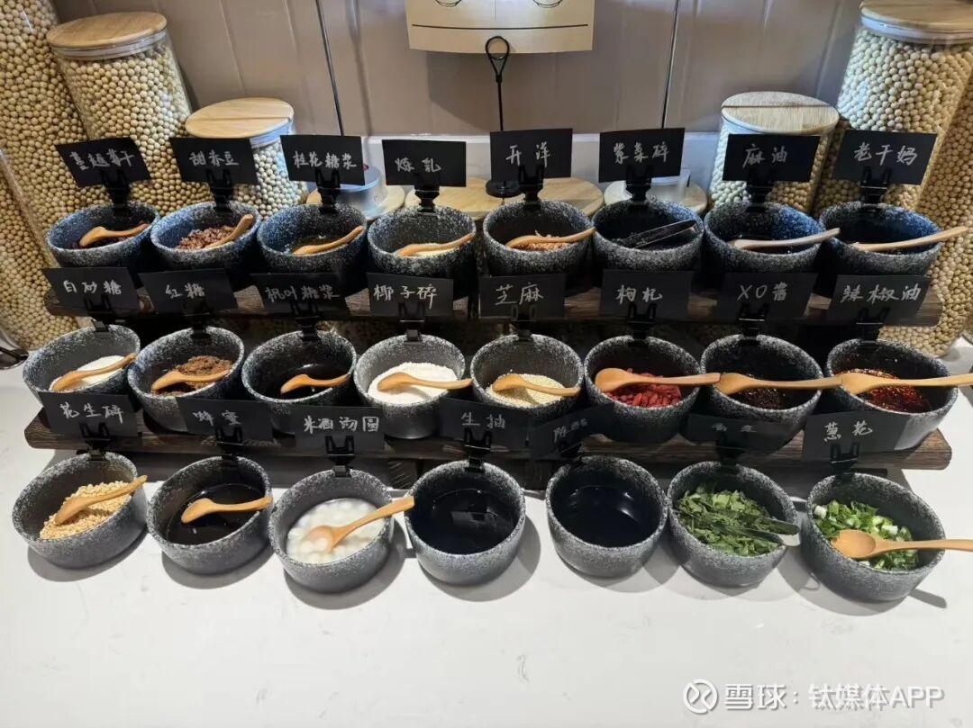 而且,除了明星单品豆渣之后,很多人分享了自己的独家DIY秘方。在早餐厅,亚朵为豆花提供了两个口味搭配参考,分别是咸口豆花和甜口豆花,并配备了20多种小料。