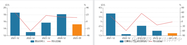 销售毛利率从2021年Q2的42.94%降至2022年Q4的25.25%,波动幅度超70%;销售净利率由2021年Q2的23.90%大幅回落至2022年Q4的5.21%,波动幅度超过350%;归母净利润2025年Q3为1.76亿元,同比微降0.70%,但一季度、二季度净利润则分别同比下降了36.73%、18.78%。
