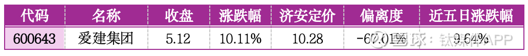 机会提示:该股偏离济安定价-47.31%,估值处于合理偏低区间,首次涨停后抛压较小,公司基本面稳健增长,业绩预期向好,估值修复具备基本面支撑,建议积极跟踪。