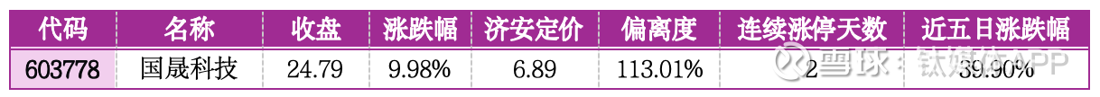 风险提示:该股偏离济安定价113.01%,估值存在严重溢价,2连板后资金博弈白热化,短期涨幅已大幅透支产能扩张预期,控股股东股份质押比例较高,情绪退潮后回撤风险极大,建议坚决规避。