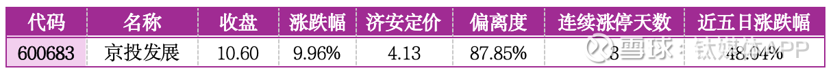 风险提示:该股偏离济安定价87.85%,估值存在显著虚高,3连板后重组预期已部分透支,资产剥离方案尚未最终确定,交易细节存在不确定性,短期涨幅与基本面严重背离,情绪退潮后回调风险较大,建议谨慎观望。