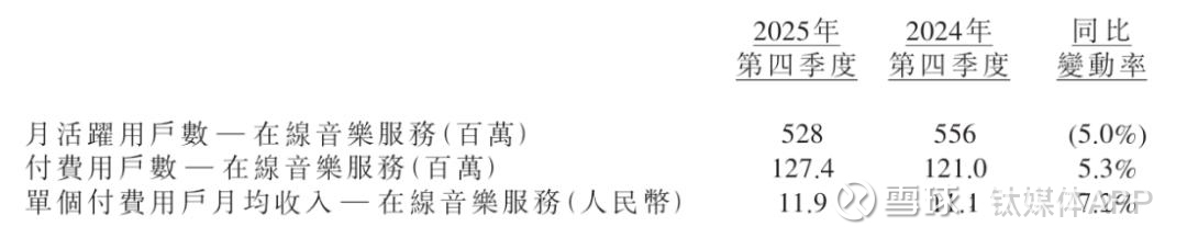 陆玖商业评论注意到,更耐人寻味的是,2026年开始,腾讯音乐将不再披露在线音乐MAU、付费用户数和ARPPU季度数据。