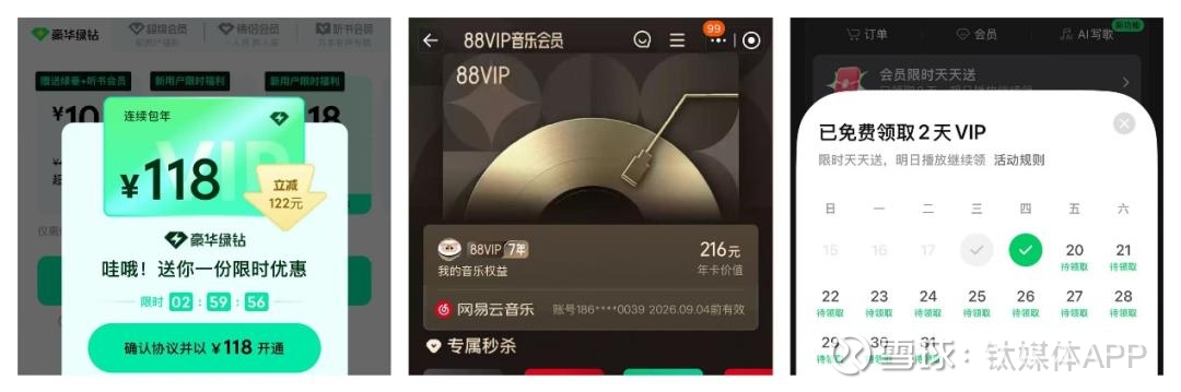 QQ音乐、酷狗音乐的会员说贵不算贵,但也不便宜,一年100出头;网易云音乐,88VIP的联名,88VIP88块钱,闲鱼卖50;字节跳动的汽水音乐,暂时可以视为免费。