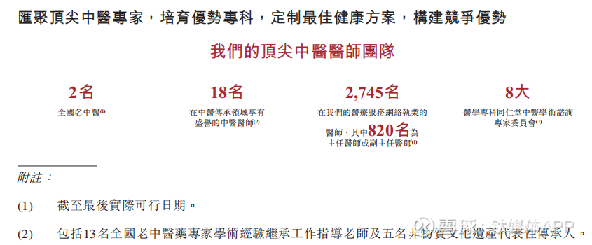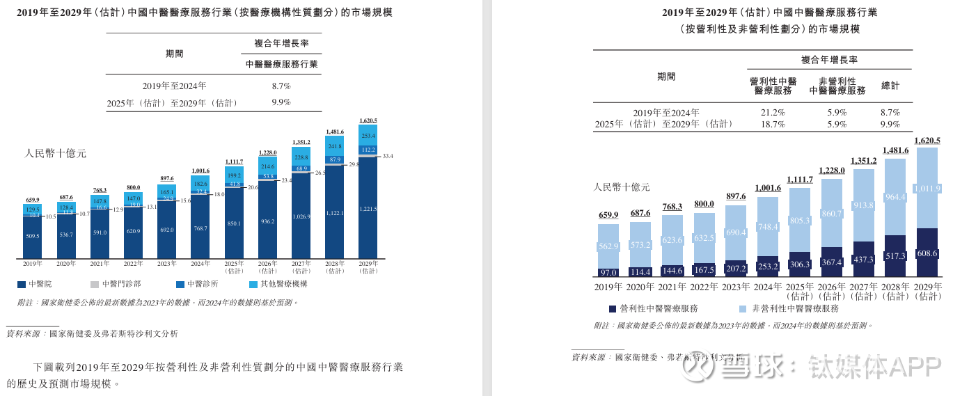 在极度分散的中医服务市场,公司已确立明确的龙头优势:按2024年总门诊人次及住院人次计,是中国非公立中医院医疗服务行业中最大的中医院集团,市场份额为1.7%;按同年中医医疗服务总收入计,排名第二,市场份额0.2%。