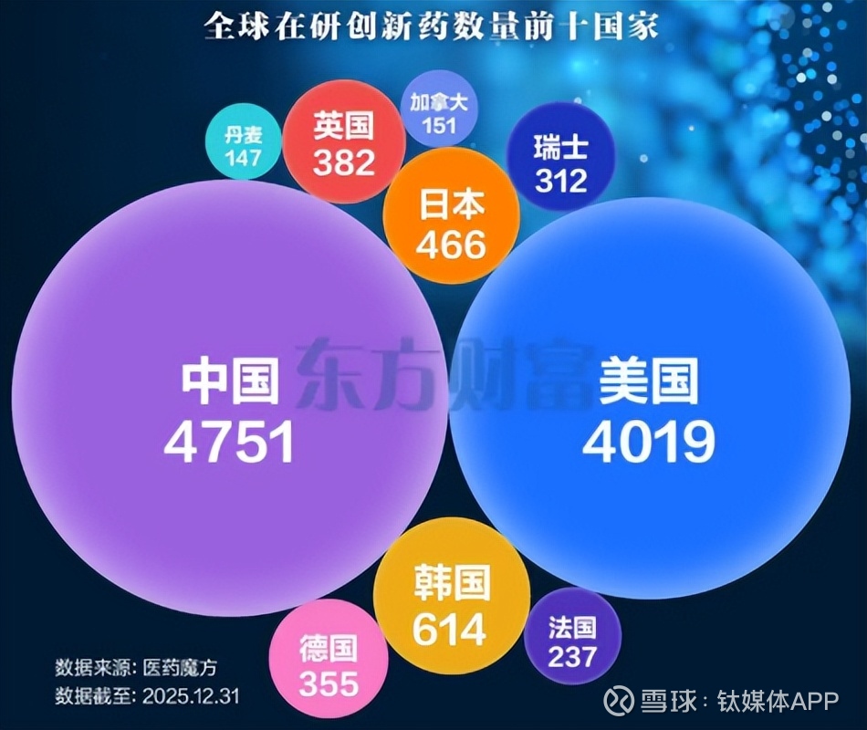研发储备不断增长。医药魔方披露的数据显示,截至2025年底,中国在研创新药数量达4751个,占全球在研创新药(14088个)数量的33.7%,规模优势显著。