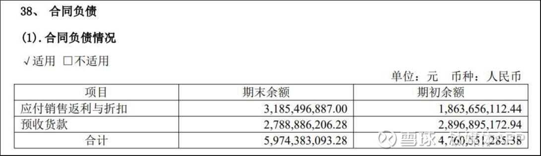 表面上看,东鹏饮料2025年合同负债从期初47.61亿元增至年末59.74亿元,似乎预示着经销商信心强劲。但细究结构发现,合同负债增量全部来自“应付销售返利与折扣”,该项金额从18.64亿元大幅攀升至31.85亿元,增幅超过70%;而代表经销商真实打款意愿的“预收货款”,反而从28.97亿元下滑至27.89亿元。此外,公司还在其他应付款中确认了2.63亿元的应付销售返利与折扣金额。