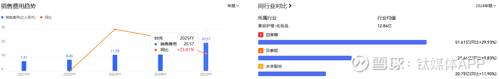 由此可见,丸美生物2025年的增长,并非产品力、品牌力驱动的高质量增长,而是靠营销费用硬砸出来的“失血式”增长。