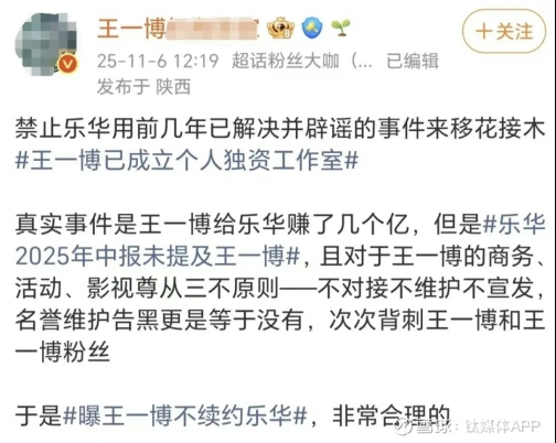 但如此一来,也暴露出了乐华过去一年多“去王一博化”的失败——从官微减少提及,到财报中有意淡化他的贡献,乐华试图向市场证明公司不只依赖一个人,结果却是不得不回到原点,用股份把王一博重新锁定在公司的叙事里。