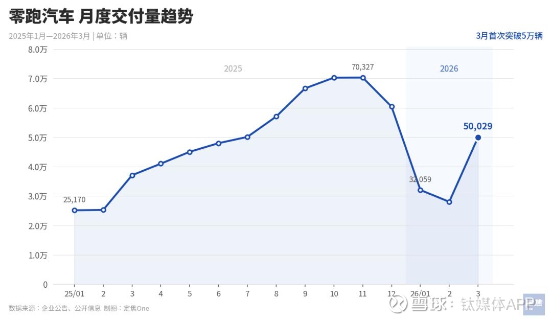 2026年初,新能源汽车购置税政策恢复至5%征收,以及以旧换新补贴方式调整,两项政策叠加,对15万元以下价格敏感市场,造成了一定的压力。零跑管理层在此前财报会上明确表示,1-2月被抑制的需求将在后续释放。从3月的表现看,这个判断部分得到了验证。