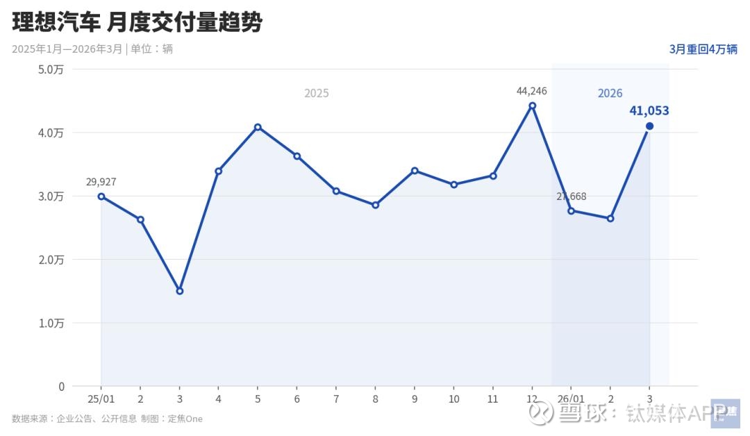 和2月一样,理想排名第二,只是和第一名零跑的交付量差距从不到两千辆扩大到近万辆,但其3月交付量重返4万辆(41053辆),还是让关注理想的从业者暂时松了口气。理想这个月再次重回双增长,Q1累计交付也因此达到9.51万辆,这是它2024年以来,第一次超出季度交付指引(8.5万到9万辆)上限。