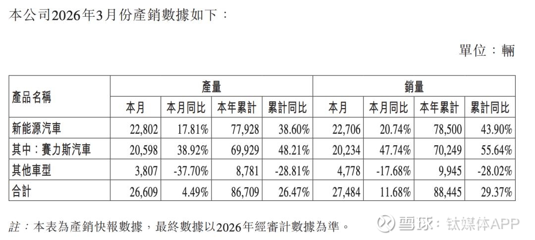 问界品牌是其核心构成,其3月销量可大致作为问界当月表现的参考。