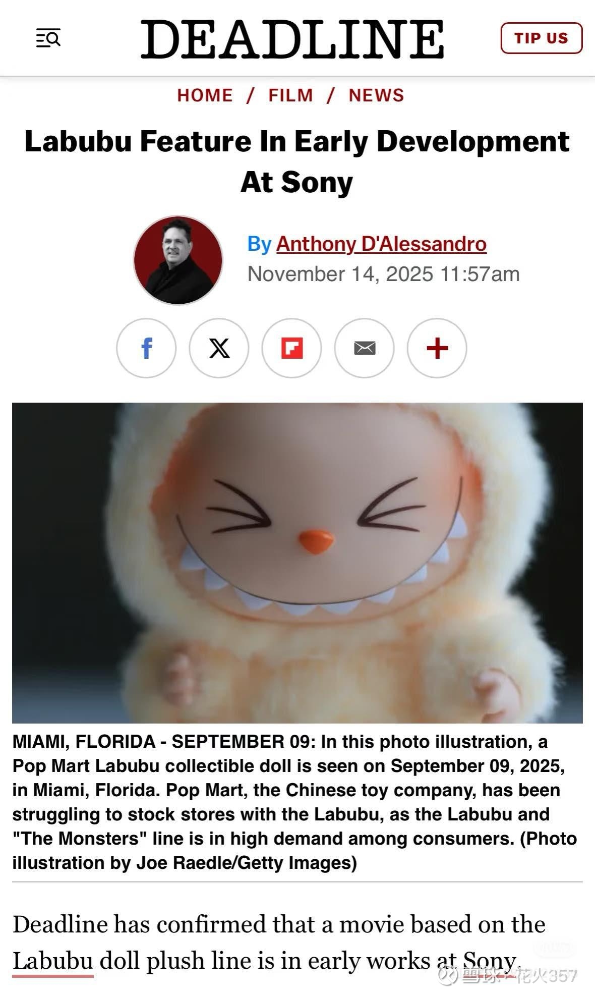 Labubu电影最终确定由索尼影业来拍!