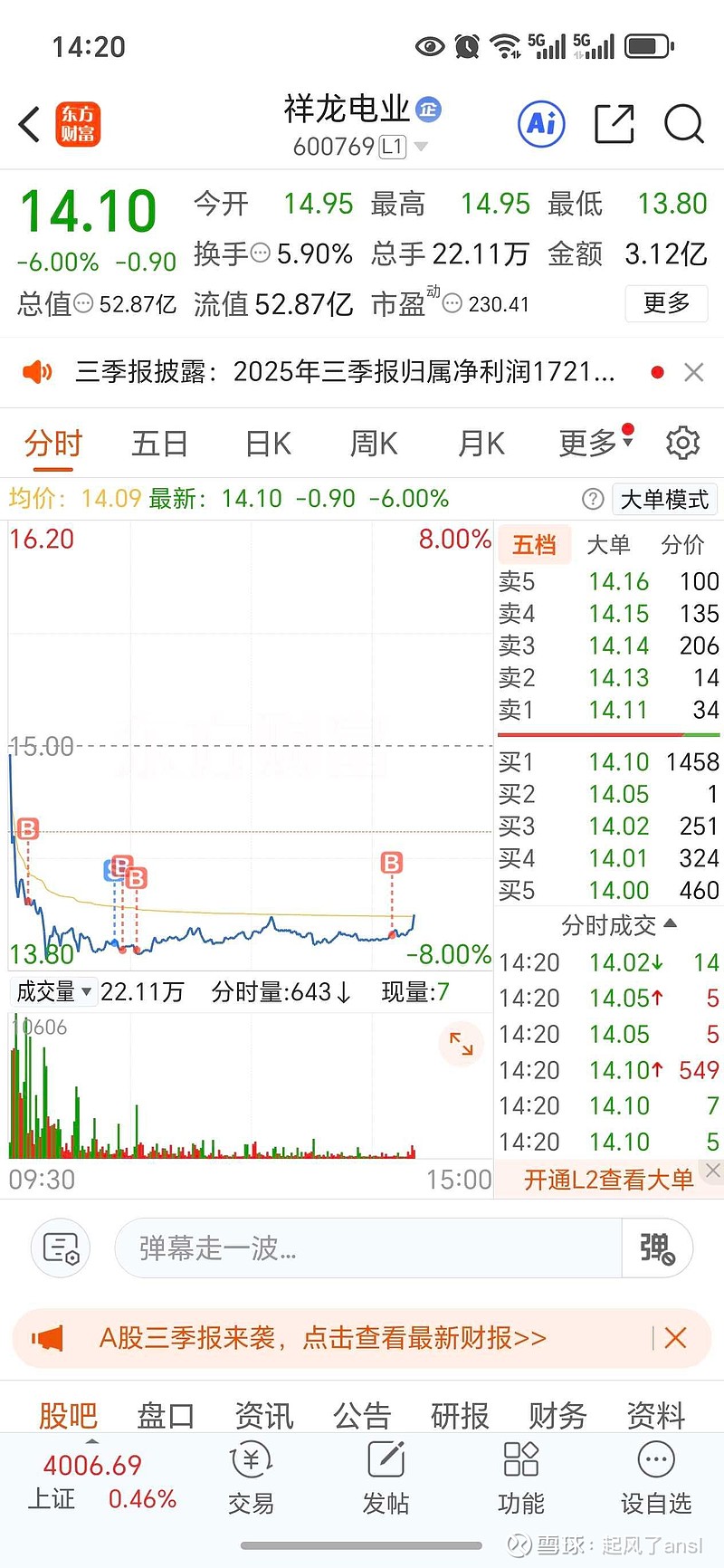 祥龙今天杀的真够猛的,以后这一个月估计都得猛洗一段时间,然后盘整然后停牌。