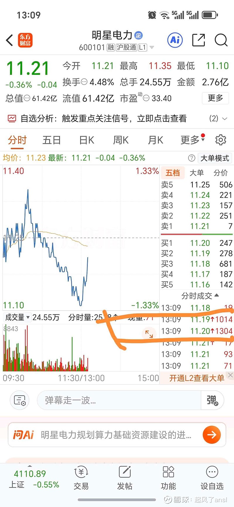 $明星电力(SH600101)$