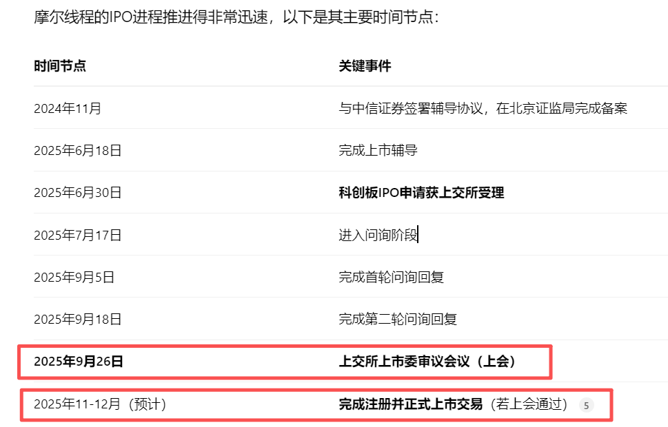 从IPO获受理到上会,摩尔线程仅用了不足三个月的时间,这个速度在市场中较为少见,也体现了监管层对于GPU这类“硬科技”企业以及国产替代的重视和支持 。