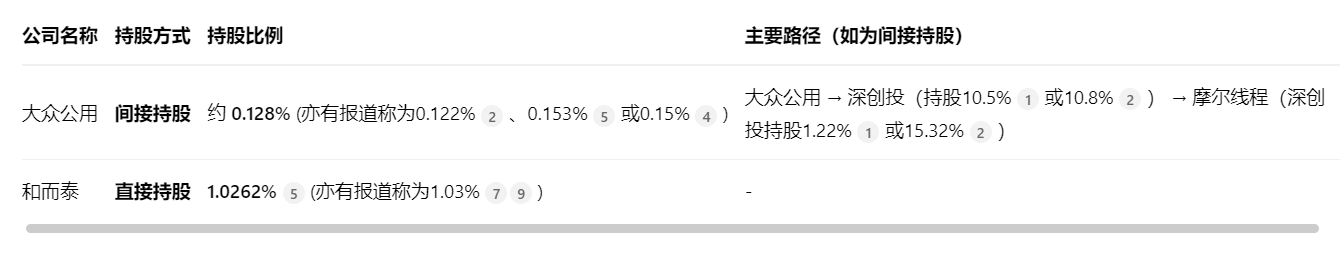 哦对了,今天2个间接持有摩尔线程1%的股份的公司已经涨了很多了: