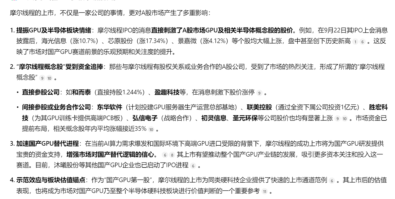 比如摩尔线程马上要上市了。我顺带说下,摩尔线程上市的时间轴是超出预期了,这个太快了。