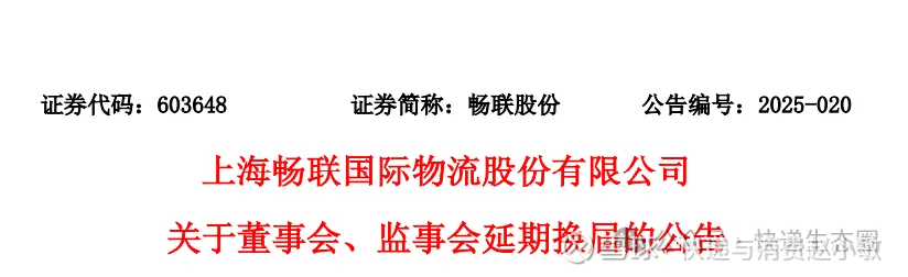 $XD畅联股(SH603648)$ 8月17日,畅联股份(603648.SH)宣布,第四届董事会、第四届监事会任期将于 2025 年 9 月 9 日届满。