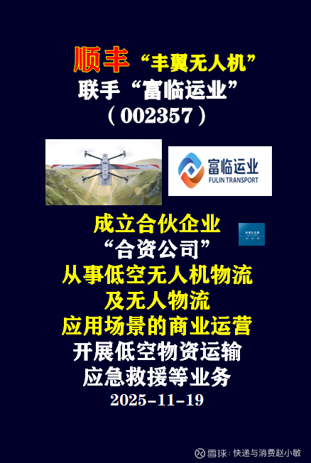 $顺丰控股(SZ002352)$ $顺丰控股(06936)$ $富临运业(SZ002357)$ 近日,四川富临运业集团股份有限公司(“富临运业”)与丰翼科技(深圳)有限公司(“丰翼科技”)签署协议,共同新设一家合营企业(“合营企业”)。合营企业将从事低空无人机物流及其他相关应用场景的商业运营。交易后,富临运业和丰翼科技将分别持有合营企业70%和30%的股权,富临运业和丰翼科技共同控制合营企业。