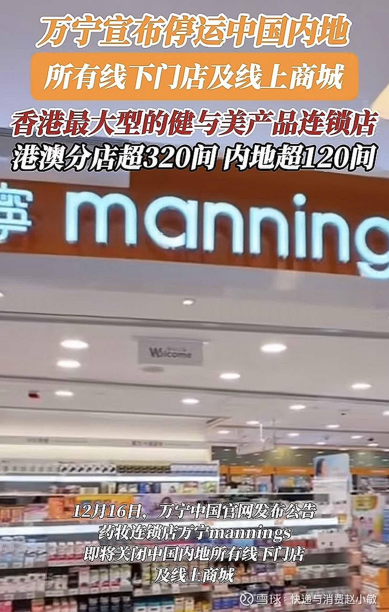 12月16日,万宁中国官网发布关于线下及线上门店停止运营及会员积分处理的公告。因公司业务战略调整,中国大陆门店将于明年年初关闭。