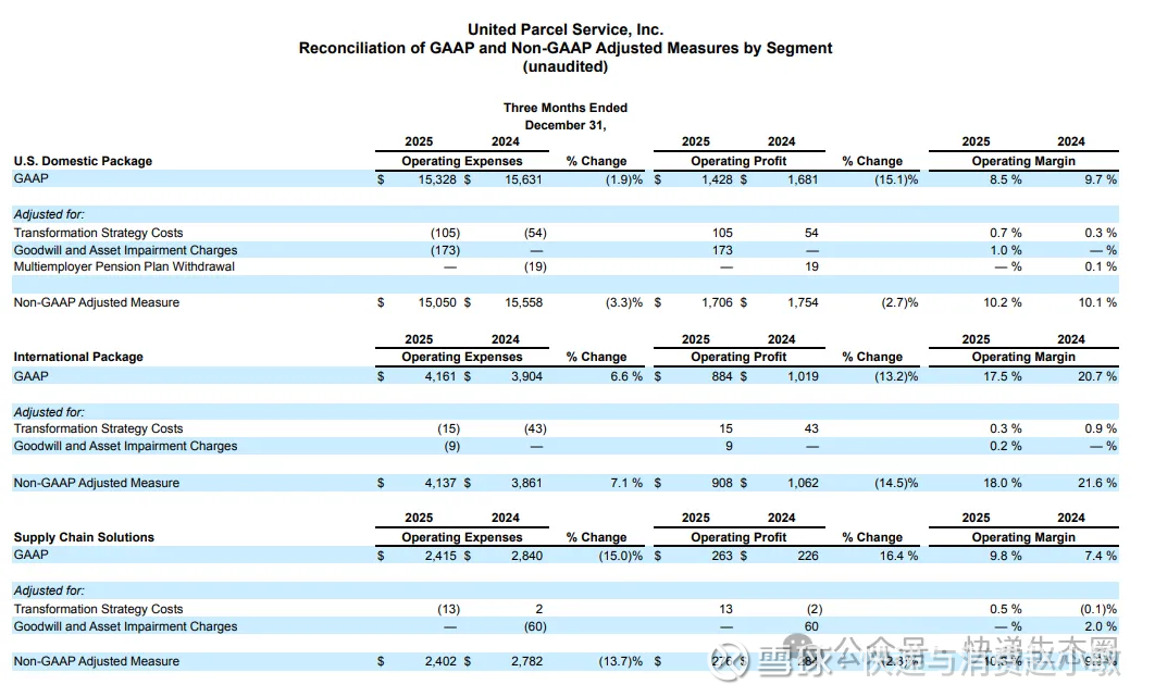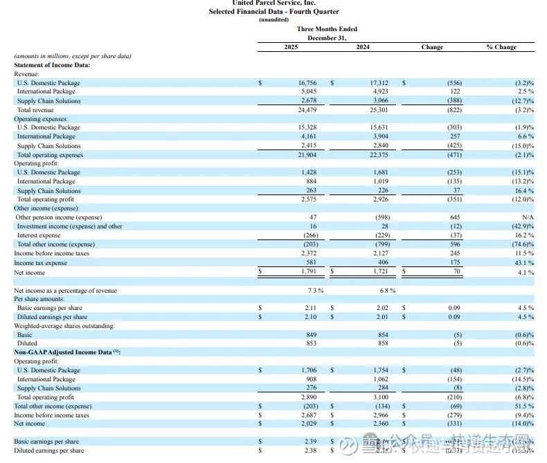 UPS首席执行官卡罗尔・托梅在一份声明中表示:“展望未来,随着逐步终止亚马逊相关低利润业务,2026 年将成为公司战略执行的拐点,助力实现业务增长与利润率的持续提升。