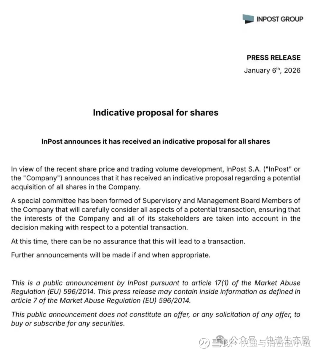 $联邦快递(FDX)$ 2月10日,由Advent International、FedEx、A&R与PPF组成的财团,同意以78亿欧元收购波兰包裹配送服务商InPost。交易旨在扩展InPost在欧洲的业务版图,同时让FedEx取得其储物柜网络的运作权。#直播快递股# #快递生态圈 #