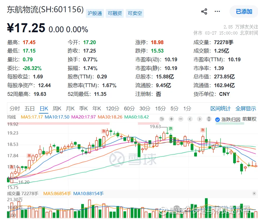 $东航物流(SH601156)$ 东航物流发布2025年财报,数据显示,2025年营业收入242.64亿元,同比增长0.87%。净利润26.88亿元,同比增长0.02%。拟向全体股东每10股派发现金红利人民币6.77元(含税)。经营现金流62亿。#直播快递股# #快递生态圈 # #快递消费生态圈#