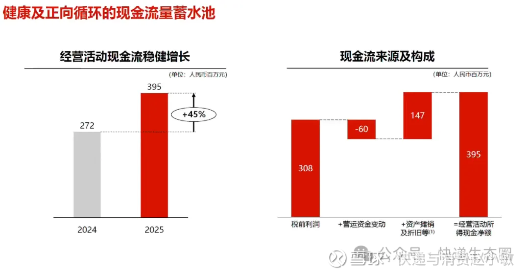 经营活动现金净额同比增长45%,与收入增速高度吻合,表明公司的利润增长具有真实的现金含量,而非依赖应计项目。资金储备充裕,为后续在县域拓展、技术研发和骑手生态建设方面的持续投入提供了坚实保障。