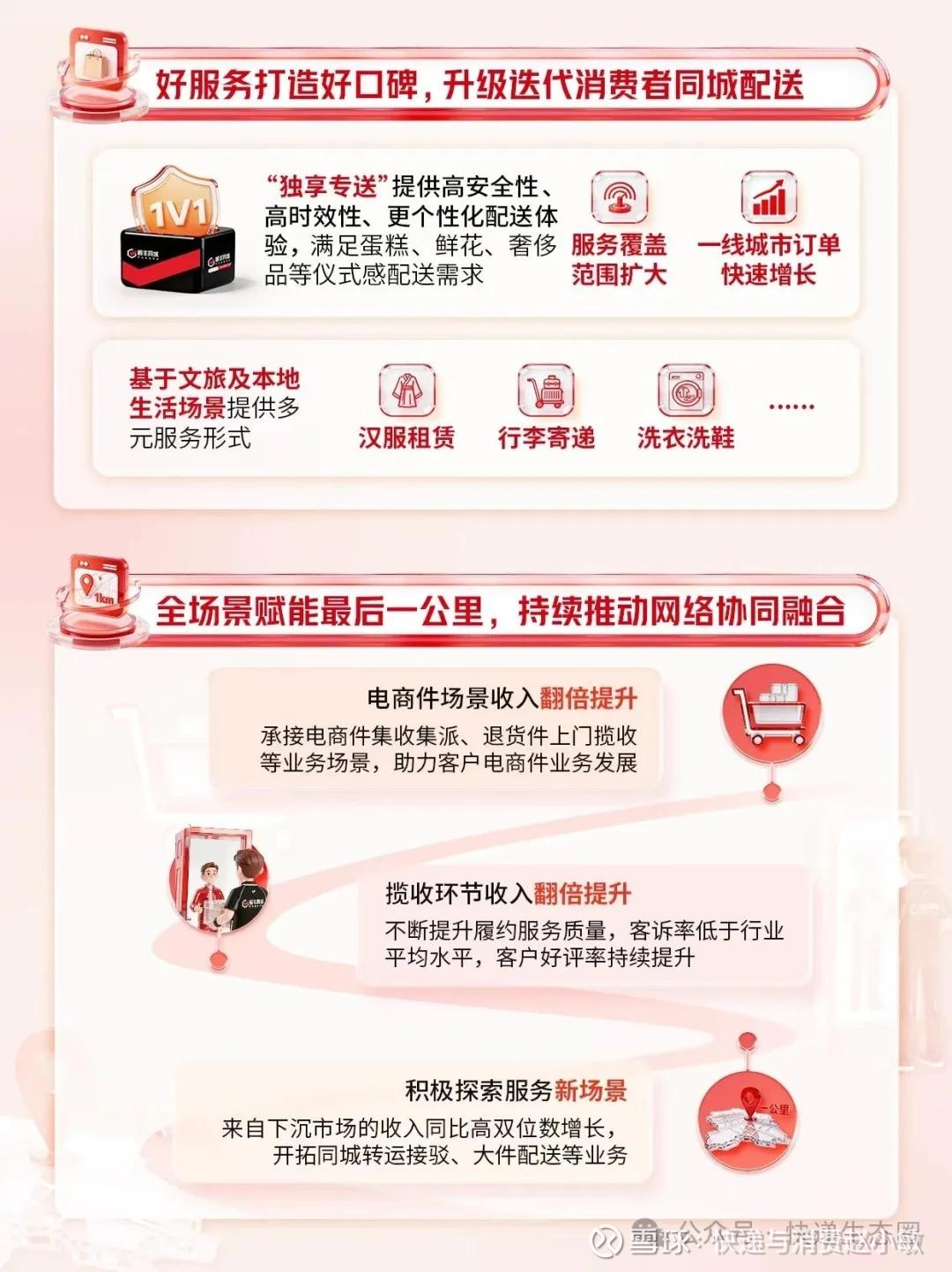收件业务和电商件收入及订单量实现翻倍提升,带动最后一公里业务规模显著增长。这一业务线既有助于提升骑手单位时间的产出效率,也进一步强化了顺丰同城作为城市配送综合服务商的平台属性,在单一场景之外构建起更强的客户粘性与综合壁垒。