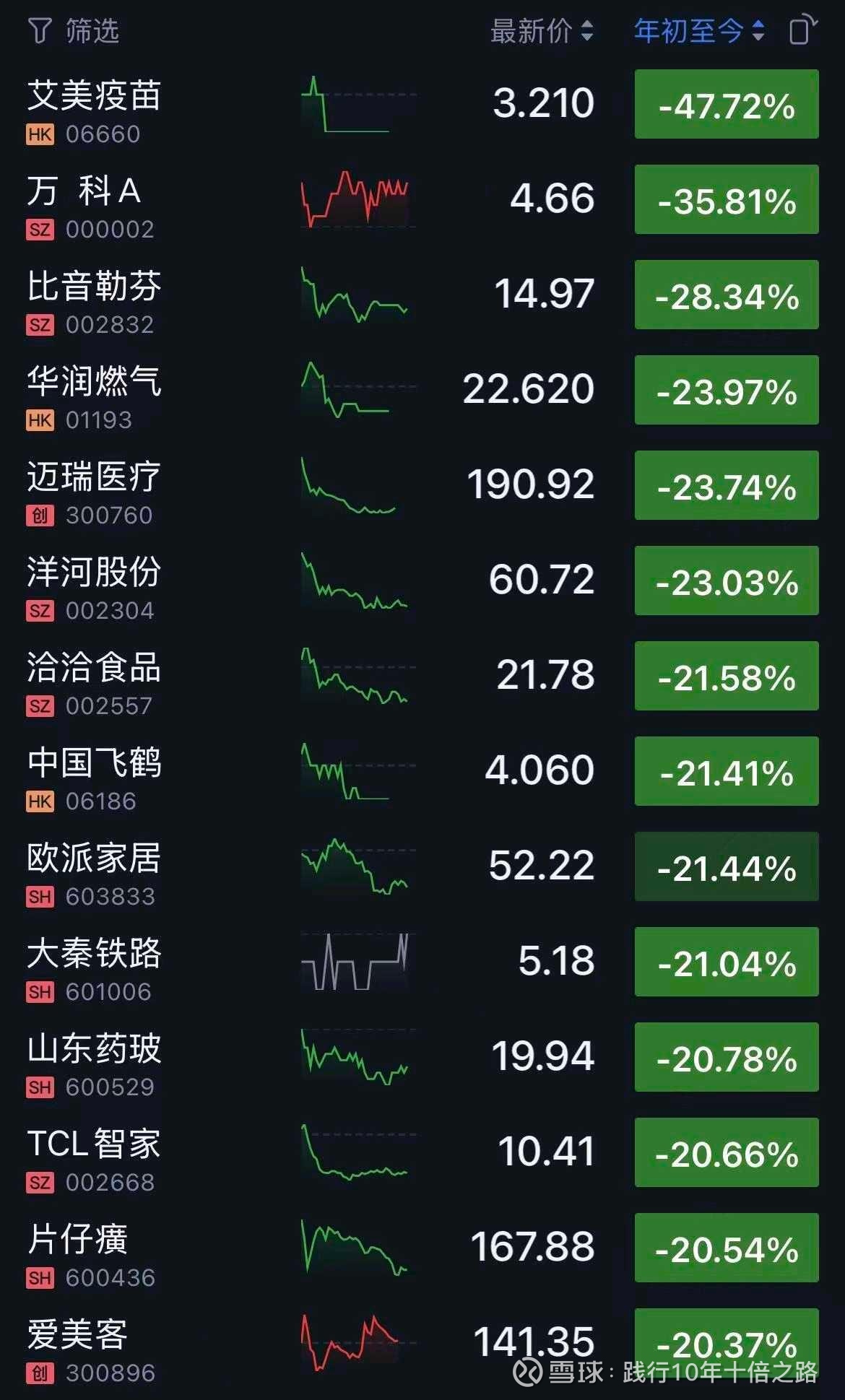 下面是我组合里创 “2635点” 以来新低或接近新低的股票统计: