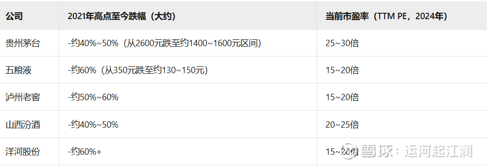 总体来看,大部分A股白酒龙头公司股价从2021年高点至今普遍腰斩甚至跌去60%以上。