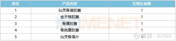 2023年中国三大终端六大市场骨质疏松中成药产品TOP5