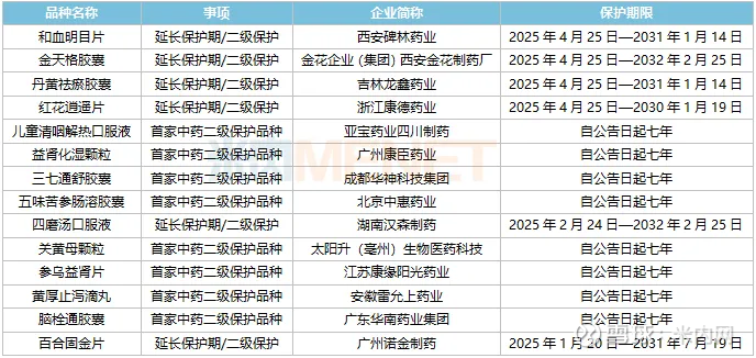 今年以来国家药监局发布的中药保护品种公告