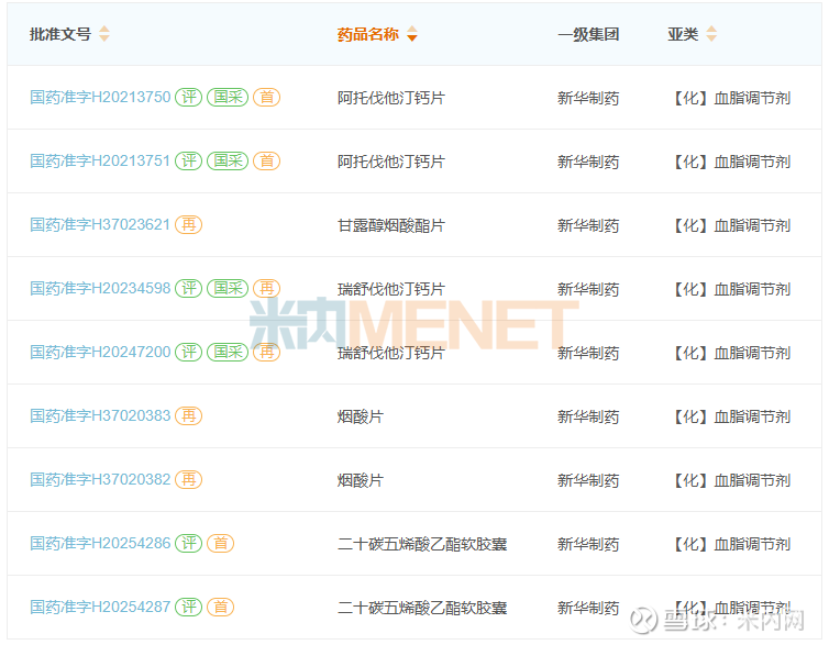 截至目前,新华制药已有5款血脂调节剂上市销售,包括了HMGCoA还原酶抑制剂(阿托伐他汀钙片、瑞舒伐他汀钙片)、烟酸及其衍生物(烟酸片、甘露醇烟酸酯片)、其他血脂调节剂(二十碳五烯酸乙酯软胶囊),暂无血脂调节复方制剂获批。