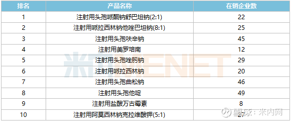 来源:米内网中国公立医疗机构药品终端竞争格局