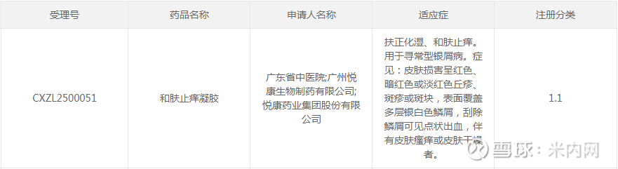 米内网数据显示,和肤止痒凝胶的临床申请(受理号:CXZL2500051)于2025年7月获得CDE承办,随后于今年9月获得临床试验默示许可。