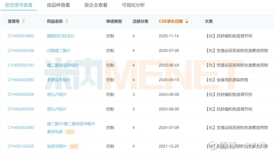 米内网数据显示,目前奥锐特有7个品种以新注册分类报产,以生殖泌尿系统和性激素类药物为主,其中地屈孕酮片、雌二醇片/雌二醇地屈孕酮片复合包装已获批生产并视同过评,醋酸阿比特龙片、戊酸雌二醇片、雌二醇地屈孕酮片、多替拉韦钠片、恩扎卢胺片还在审评审批中。