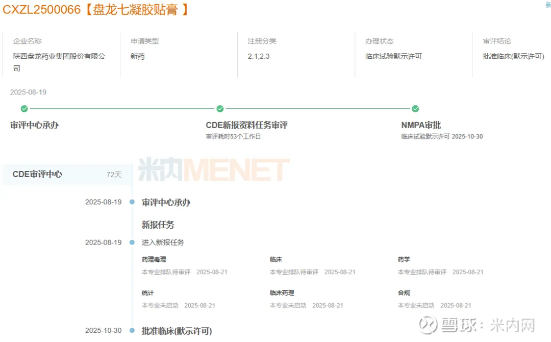 日前,盘龙药业发布公告,公司的中药新药盘龙七凝胶贴膏获批临床,同意开展用于膝骨关节炎的临床试验。资料显示,盘龙七凝胶贴膏是由盘龙七药酒改良而来,处方由盘龙七、壮筋丹等30味药材组成,开发成凝胶贴膏剂,该产品较原剂型在使用便捷性、起效速度、使用人群等方面均有明显优势,其主治功能为活血化瘀、祛风除湿、消肿止痛。