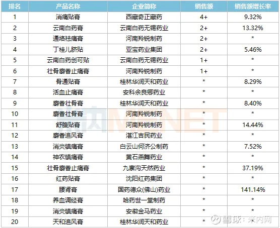 TOP20出炉!独家产品大涨141%,奇正、云南白药、羚锐上榜