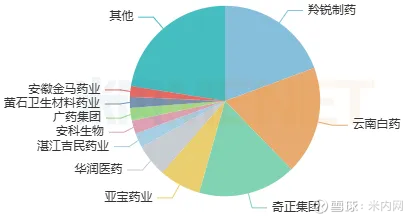 从集团TOP20来看,羚锐制药、云南白药、奇正集团、亚宝药业、华润医药位居前五,国药集团增速翻倍,黄石卫生材料药业、逢春制药、湖南杏林春药业均有双位数增速。
