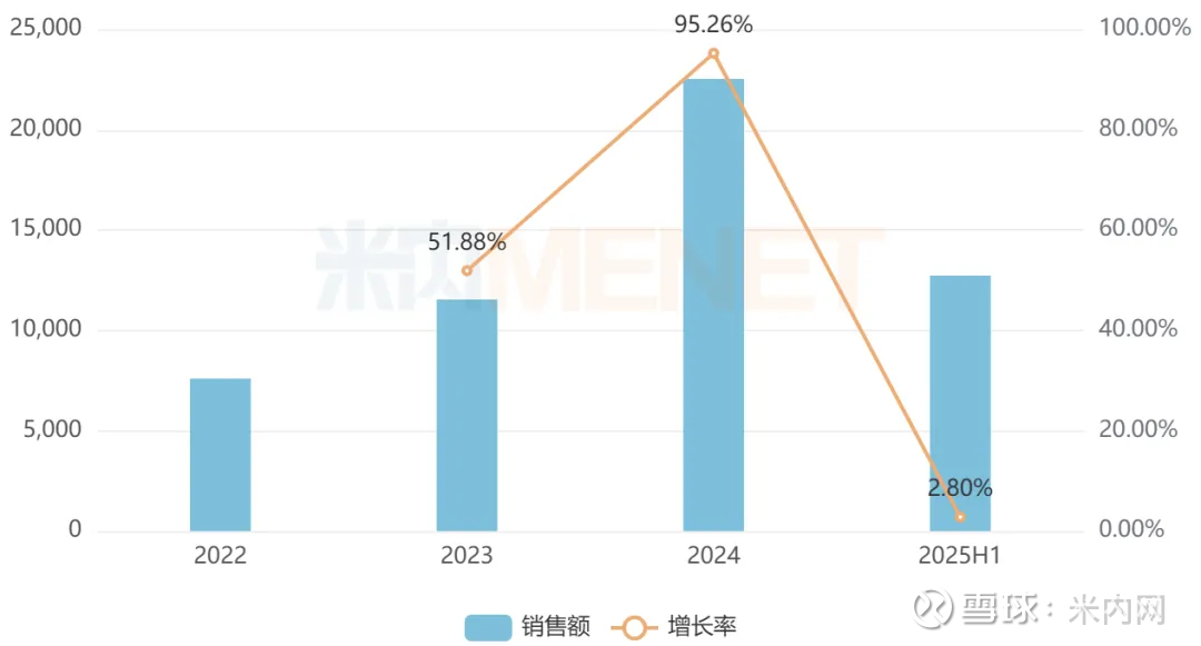 米内网数据显示,明治的头孢托仑匹酯颗粒近年来在中国三大终端六大市场的销售额呈逐年上涨态势,2024年突破2亿元,同比增长约95%,2025年上半年保持小幅增长至接近1.3亿元。