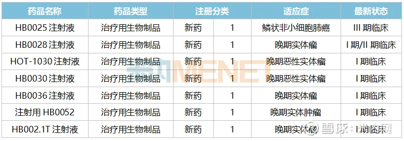 2026年1月,HB0025注射液正式启动鳞状非小细胞肺癌III期临床试验。早前,该新药的肾癌II期临床试验已在2024年4月完成,而该新药的晚期子宫内膜癌、三阴性乳腺癌、结直肠癌等适应症正在开展II期临床试验。