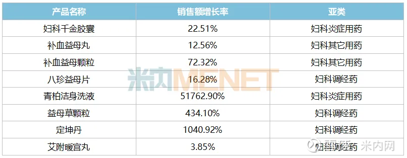 表2:千金药业中成药妇科用药TOP20产品正增长的产品