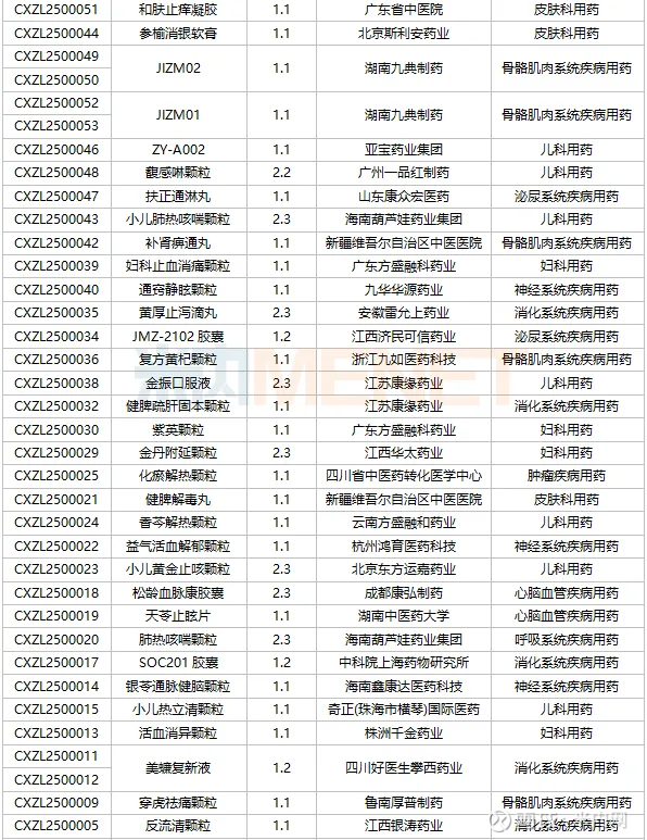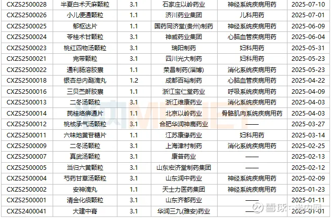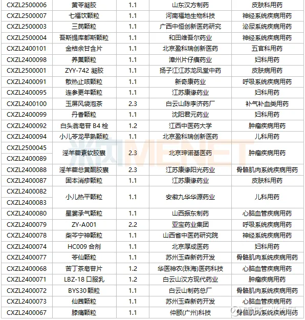 13款中药1类新药中,包括江苏康缘药业的苏辛通窍颗粒、北京星昊医药的疏肝解郁颗粒、石家庄以岭药业的小儿连花清感颗粒、国药同济堂(贵州)制药的郁枢达片等。