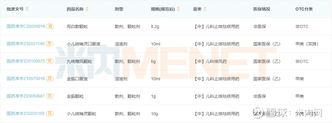 米内网数据显示,在儿科中成药领域,康缘药业现拥有6个产品的生产批文,包括4个独家品种(含剂型独家,下同)九味熄风颗粒、泻白散颗粒、金振口服液、金振颗粒,以及2个非独家品种小儿咳喘灵口服液、小儿咳喘灵颗粒。其中,金振口服液、小儿咳喘灵口服液和小儿咳喘灵颗粒2024年在中国三大终端六大市场销售额分别超10亿元、5亿元和3亿元。
